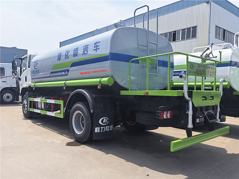 | 上裝配置:罐體采用國標Q235碳鋼,罐體厚度4mm,前后封頭5MM加厚型,罐體實際容積12-15噸(12-15立方),產品質量成熟可靠,設計先進合理,比同類灑水泵壓力大、吸程遠、使用壽命長,可泵進泵出。前沖、后灑、側噴,消防栓接口,帶后工作平臺及綠化高炮(可全方位旋轉,可連續調成直沖狀、大雨、小雨、毛毛雨),水位計,兩根等長輸水管,其余標配。 |
