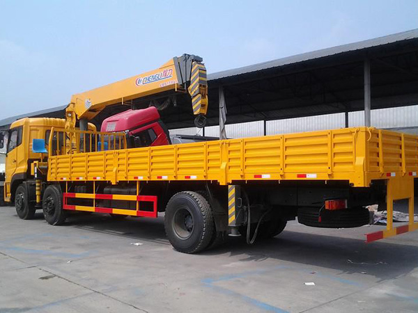 隨底盤選裝駕駛室;選裝側窗裝飾板,選裝氣喇叭.選裝貨廂箱板結構;選裝隨車起重機操作座椅;選裝隨車起重機后支腿.直臂式吊機:型號/吊機質量(kg)/最大起升載荷(kg)/整備質量(kg)/載質量(kg)/貨廂長度(mm)/外高分別為:1.(SQS250,QYS-10,URV1004,ZLC2500T,SPS25000,SQ10,SQ1004)/4000/10000/14250/[10620(2人),10555(3人)]/8400/3760;2.(SQS300,QYS-12,URV1204,ZLC3000T,SPS30000,SQ12,SQ1204)/5000/12000/15200/[9670(2人),9605(3人)]/8300/3800;折臂式吊機的分別為:1.(SQZ200,QYS-10Z,SPK32080)/3800/10000/14000/[10870(2人),10805(3人)]/8200/3600;2.(SQZ300,QYS-12Z,SPK42502,SQZ2503)/4600/12000/14800/[10070(2人),10005(3人)]/8200/3610.側面防護裝置:材料Q235,螺栓連接;后下部防護裝置:材料Q235,螺栓連接,斷面尺寸120×60mm,離地高度:490mm. ABS型號:4460046440,ABS廠家:威伯科汽車控制系統(中國)有限公司.安裝具有衛星定位功能的行駛記錄儀.該車可隨底盤選裝排氣管前置、盤式制動器、限速裝置,限速80km/h.