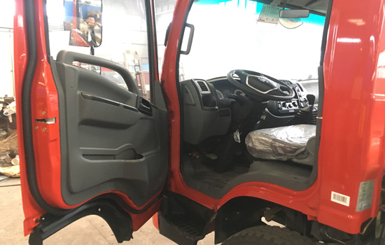 三環創客挖機平板運輸車底盤配置:本車采用玉柴130馬力發動機,帶中冷增壓,軸距3.3米(前后輪中心軸之間的距離),200雙層大梁,后橋7噸。帶原廠空調、ABS,電動玻璃。